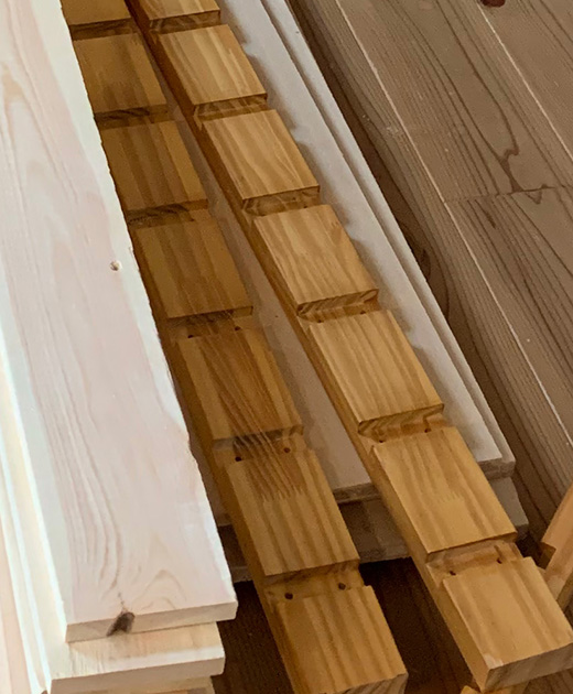 この支柱に今回新たにホームセンターで仕入れた、細い木材をボンドで付ける