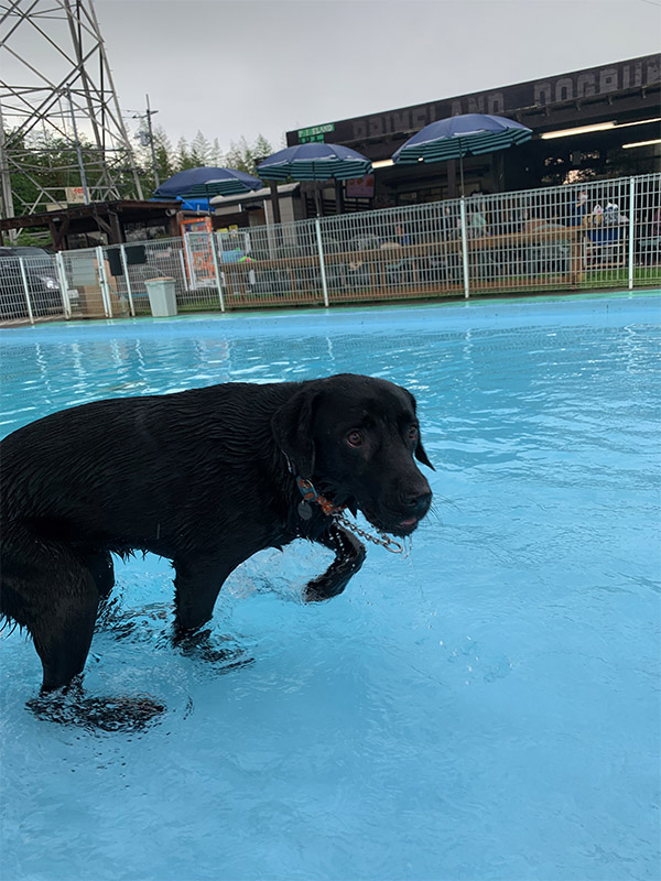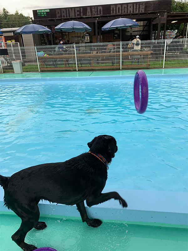 久々のプールだったので、最初はおっかなびっくりだったのですが、すぐに慣れて何度も飛び込んでました。さすがラブラドール。